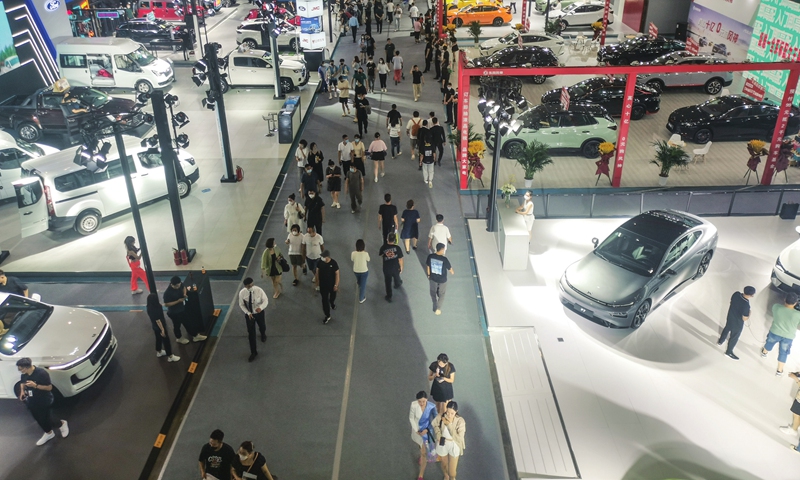 - Visitors pass by a new-energy vehicle (NEV) and smart car show as it kicks off in Shenyang, capital of Northeast China’s Liaoning Province on June 21, 2022. China produced 466,000 NEVs in May, with 447,000 sold, both up 1.1 times from the year before, industry data showed. Photo: cnsphoto